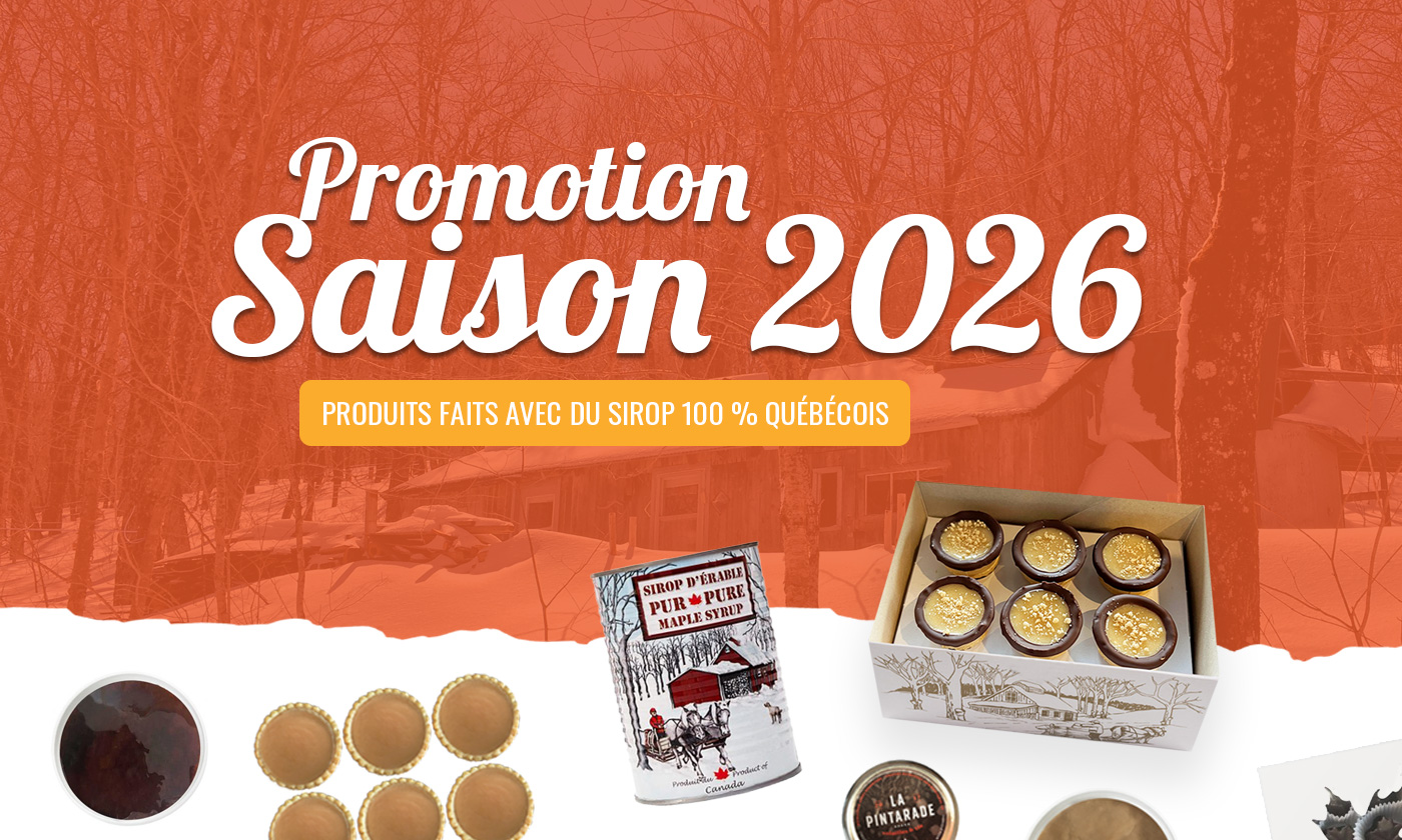 *Le 80 $ est calculé avant les frais de livraison (si applicable) et avant les taxes. Nous nous gardons le droit de substituer le produit cadeau sans préavis (pour un cadeau d’une valeur équivalente ou supérieure) en cas de rupture de stocks. Promotion d’une durée limitée axée principalement sur la saison des sucres. Un avis de promotion terminée est affiché en entête lorsque celle-ci n’est plus en vigueur.