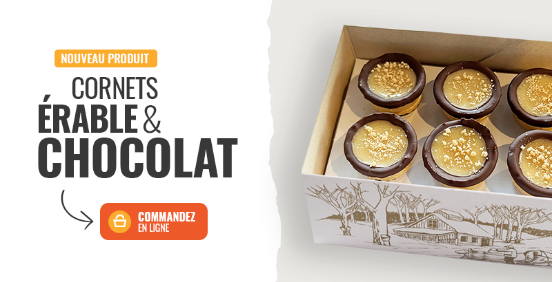 Nous avons l’immense plaisir de vous annoncer qu’un nouveau produit vient s’ajouter à notre belle boutique en ligne. Certains d’entre vous en ont rêvé… nous l’avons fait ! Pour encore plus de gourmandise, découvrez sans plus tarder nos nouveaux cornets érable et chocolat.